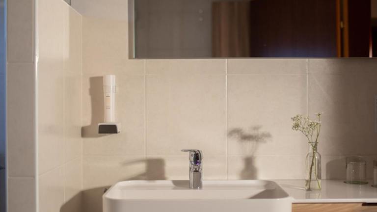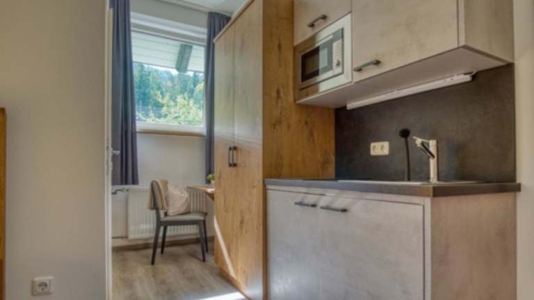 Jede Unterkunft im Gasthof Abfalter bietet ein ungewöhnliches Schlafzimmer mit einem Bad mit offenem Schnitt. Das Interieur ist modern und geprägt von Buchenholzmöbeln und Massivholzböden. Einige Zimmer verfügen über einen eigenen Balkon, der einen herrlichen Ausblick auf die grüne Umgebung bietet.
