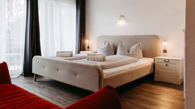 Die Zimmer in der Pension Adler sind komfortabel eingerichtet und bieten alles, was Sie für einen angenehmen Aufenthalt benötigen. Einige Zimmer verfügen über einen Balkon, von dem aus Sie die frische Luft und die schöne Aussicht genießen können. WLAN steht Ihnen in allen Zimmern kostenlos zur Verfügung.