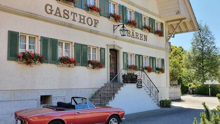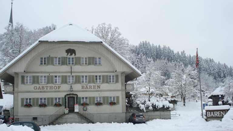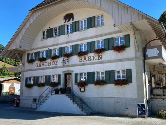Das Hotel Garni Bären Rüegsau liegt im unteren Emmental und bietet eine idyllische Lage inmitten der malerischen Landschaft. In der Umgebung gibt es zahlreiche typische Schweizer Käsereien, die einen Besuch wert sind. Der Bahnhof Hasle-Rüegsau ist nur 25 Gehminuten vom Hotel entfernt, so dass Sie bequem die Region erkunden können.