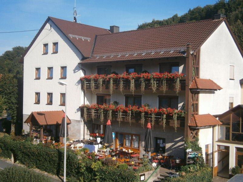 Der Gasthof Drei Linden befindet sich in idyllischer Lage in Obertrubach/OT Bärnfels. Umgeben von schöner Natur können Sie hier die Ruhe und Schönheit der Umgebung genießen. Die Autobahn A9 ist nur 12 Minuten entfernt und ermöglicht Ihnen eine einfache Anreise nach Nürnberg in nur einer Stunde.