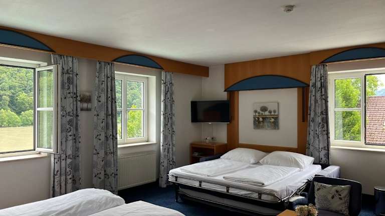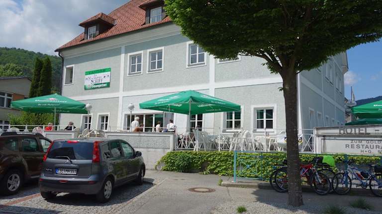Das Goldenes Schiff Hotel-Mietparkplätze in Engelhartszell bietet Ihnen eine ideale Lage direkt an der Donau und in der Nähe des Klosters Engelszell. Genießen Sie den Blick auf die Donau von der Terrasse des Cafés und Restaurants. Die Zimmer sind hell und gemütlich eingerichtet und WLAN steht Ihnen kostenfrei zur Verfügung. Das Restaurant verwöhnt Sie mit klassischer österreichischer Küche und einer Auswahl an erlesenen Weinen. Freuen Sie sich auf Unterhaltungsmöglichkeiten wie Billard und Tischfußball. Der Donauradweg und der Wanderweg Donausteig befinden sich direkt vor der Unterkunft. Tennisplätze und ein öffentliches Freibad sind ebenfalls in der Nähe. Passau erreichen Sie in nur 25 km Entfernung.