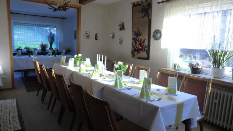 Das Gasthof Haus Hubertus bietet ein reichhaltiges Frühstücksbuffet, das jeden Morgen im einladenden Frühstücksraum serviert wird. Hier können Sie sich für den Tag stärken. Zusätzlich sind Menüs für das Mittag- und Abendessen verfügbar, damit Sie auch kulinarisch verwöhnt werden.