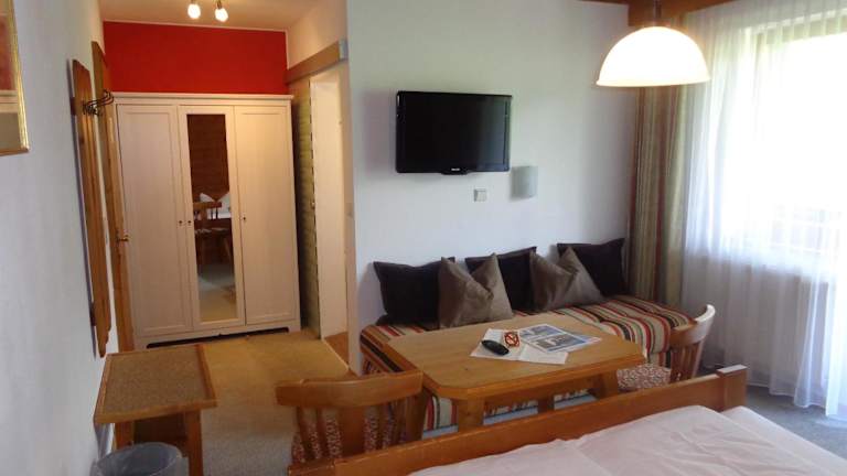Die Zimmer im Gasthof Panorama sind gemütlich eingerichtet und verfügen über einen Balkon mit herrlichem Bergblick. Jedes Zimmer ist mit einem eigenen Bad und einem Flachbild-Sat-TV ausgestattet. Einige Zimmer bieten auch eine Küchenzeile, ein separates Wohnzimmer und ein Schlafzimmer. Die Möbel im Landhausstil verleihen den Zimmern einen rustikalen Charme.