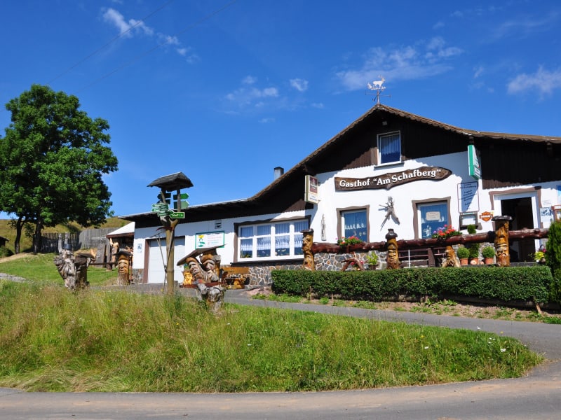 Unser liebevoll eingerichteter Gasthof mit rustikalen Schnitzereien im Biergarten liegt in sonniger Lage am Ortsrand des anerkannten Erholungsortes. Hier werden Sie mit gutbürgerlicher Küche, Kaffee und hausgebackenen Kuchen verwöhnt. sonntags Thüringer Klöße mit verschiedenen Braten. Biker sind herzlich willkommen. Freitags Holzschnitzvorführung mit der Kettensäge. Wir vermitteln Ihnen auch gern Unterkünfte mit HP in Pensionen und komfortablen Privatzimmern im Ort.