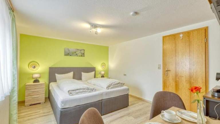 Die Unterkunft befindet sich in Bischofsheim an der Rhön, etwa 8,2 km von der Kreuzbergschanze entfernt. Weitere Sehenswürdigkeiten in der Umgebung sind Schloss Elisabethenburg, etwa 49 km entfernt, sowie die Esperantohalle Fulda und das Schlosstheater Fulda, die 32 km bzw. 33 km entfernt liegen.