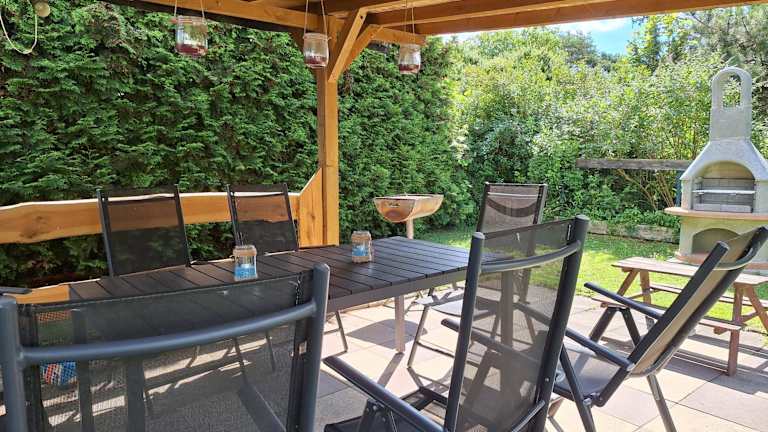 Entspannen Sie auf der Terrasse der Unterkunft und genießen Sie die angenehme Atmosphäre. Nutzen Sie die Grillmöglichkeiten und verbringen Sie einen gemütlichen Abend im Freien.