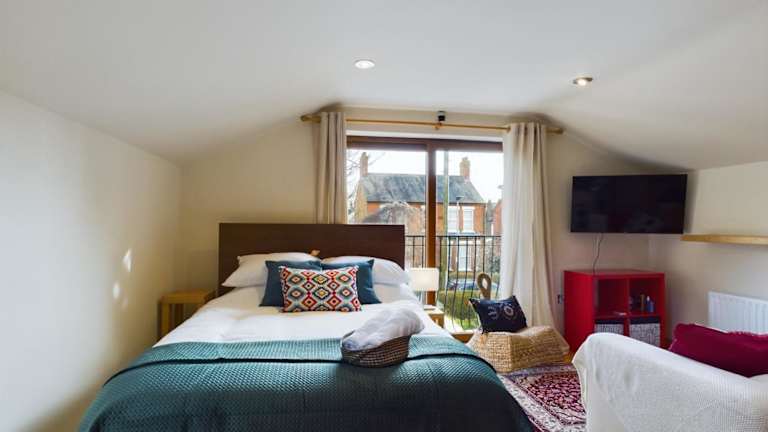Die Ferienwohnung verfügt über ein Schlafzimmer und ist mit einem Fernseher sowie Handtüchern und Bettwäsche ausgestattet.