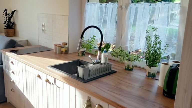 Das Ferienhaus verfügt über zwei Schlafzimmer und ein Wohnzimmer mit Flachbild-TV. Eine gut ausgestattete Küchenzeile bietet einen Kühlschrank sowie einen Geschirrspüler. Das Badezimmer ist mit einer Dusche ausgestattet. In der Unterkunft werden Handtücher und Bettwäsche bereitgestellt.