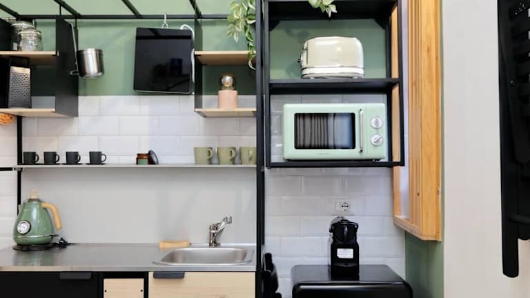 Die Unterkunft verfügt über eine voll ausgestattete Küche, die eine Kaffeemaschine und einen Kühlschrank enthält, sodass die Selbstverpflegung möglich ist.