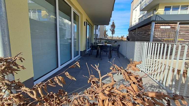 Die Ferienwohnung verfügt über eine Terrasse, ein Schlafzimmer, ein Wohnzimmer sowie eine gut ausgestattete Küche, die mit einem Kühlschrank und Geschirrspüler ausgestattet ist. Handtücher und Bettwäsche werden zur Verfügung gestellt.