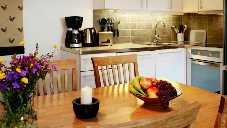 Die Ferienwohnung umfasst 2 Schlafzimmer, ein Wohnzimmer mit einem Flachbild-TV sowie eine gut ausgestattete Küche, die mit einem Kühlschrank und einem Geschirrspüler versehen ist. Zusätzlich gibt es ein Badezimmer mit Dusche. Handtücher und Bettwäsche werden bereitgestellt.