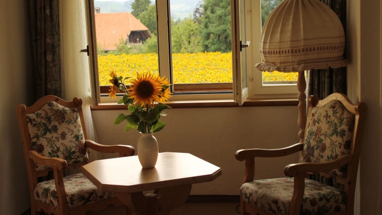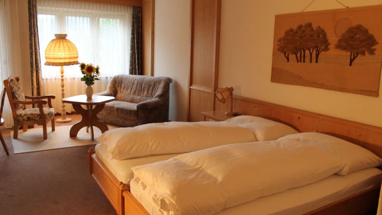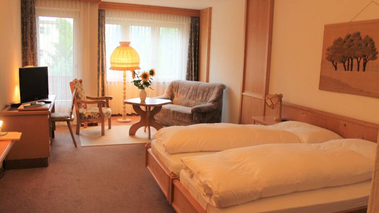 Die Zimmer im Gemeinschaftshaus im Oberdorf verfügen alle über einen Balkon und einen gemütlichen Sitzbereich. Jedes Zimmer hat ein eigenes Bad mit einer Badewanne oder einer Dusche sowie einem Haartrockner. Vom Zimmer aus haben Sie einen schönen Blick auf den Garten. Zur weiteren Ausstattung gehören ein Sofa, ein Schreibtisch und Bettwäsche.