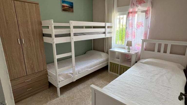 Dieses Bungalow bietet eine Unterkunft mit einem saisonalen Außenpool, einem Garten, einer Terrasse und kostenlosem WLAN. Die Unterkunft ist klimatisiert und verfügt über zwei Schlafzimmer, ein Wohnzimmer, eine voll ausgestattete Küche sowie ein Badezimmer.