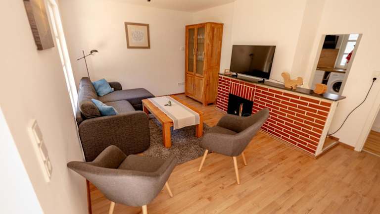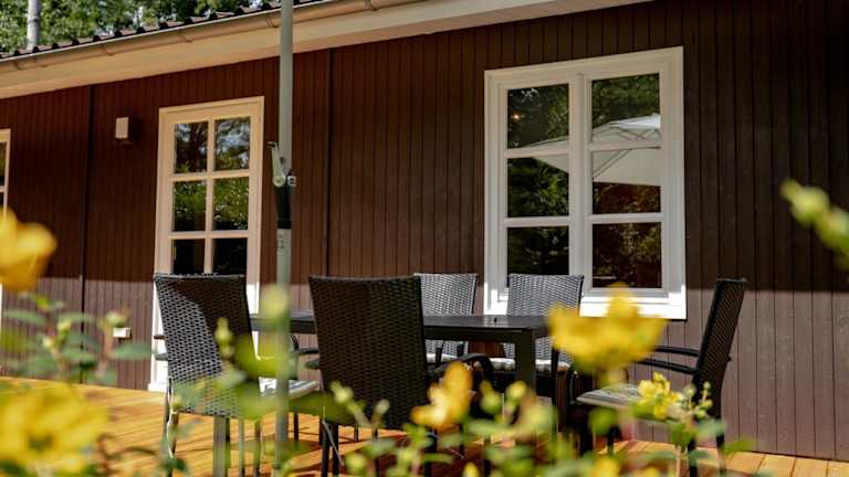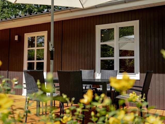 Das Ferienhaus umfasst zwei Schlafzimmer, eine Küche mit Kühlschrank und Herdplatte, einen Flachbild-TV sowie einen Sitzbereich. Es verfügt über ein Badezimmer mit Dusche sowie Heizung. Ein Kinderspielplatz ist ebenfalls vorhanden.