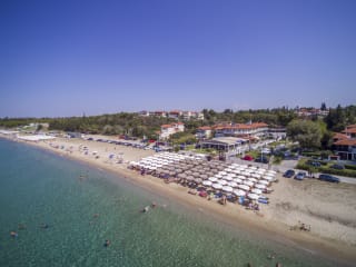 Das Georgalas Hotel liegt direkt am Sandstrand von Geoponika und bietet einen traumhaften Blick auf den Golf von Thermaikos. In der Umgebung finden Sie zahlreiche Einkaufsmöglichkeiten im Zentrum von Nea Kallikrateia, das nur 3 km entfernt ist. Die berühmte Petralona-Höhle erreichen Sie nach einer kurzen 10-minütigen Fahrt. Der Flughafen von Thessaloniki ist ebenfalls leicht erreichbar und befindet sich 25 km entfernt.