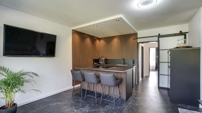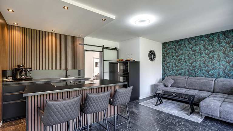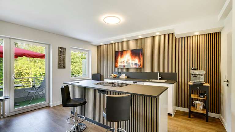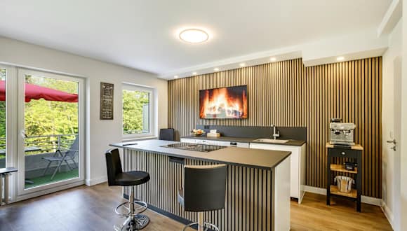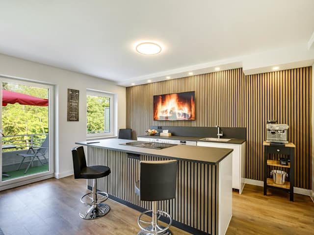 Die Unterkunft verfügt über eine Küche, die mit einem Kühlschrank, Geschirrspüler, Ofen, Herdplatte sowie einer Kaffeemaschine und einem Wasserkocher ausgestattet ist. Es sind keine Informationen zu Verpflegungsmöglichkeiten vorhanden.