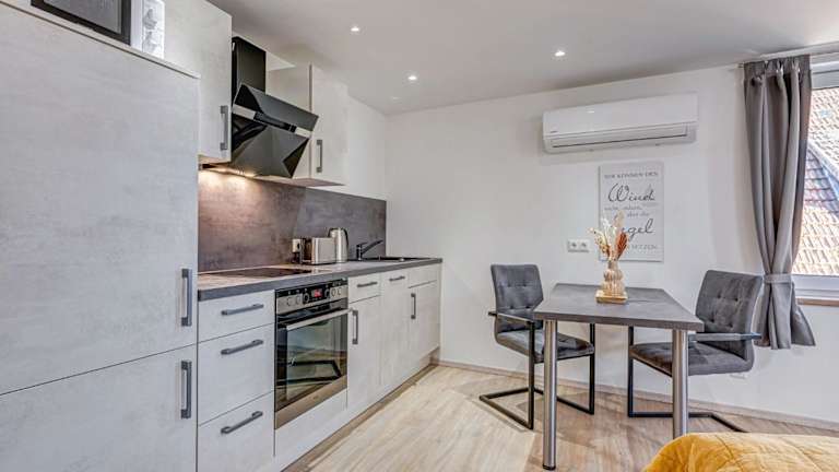 Die Apartments sind mit einem Sitzbereich ausgestattet und verfügen über einen Satelliten-Flachbild-TV. Eine voll ausgestattete Küche mit Kühlschrank, Geschirrspüler, Ofen, Mikrowelle und Herdplatte ist vorhanden. Zur Ausstattung gehören zudem eine Kaffeemaschine, ein Wasserkocher sowie ein eigenes Badezimmer mit Dusche und kostenlosen Pflegeprodukten.