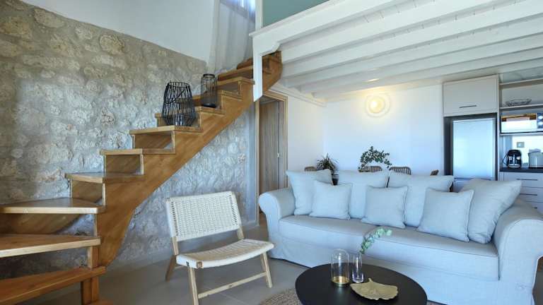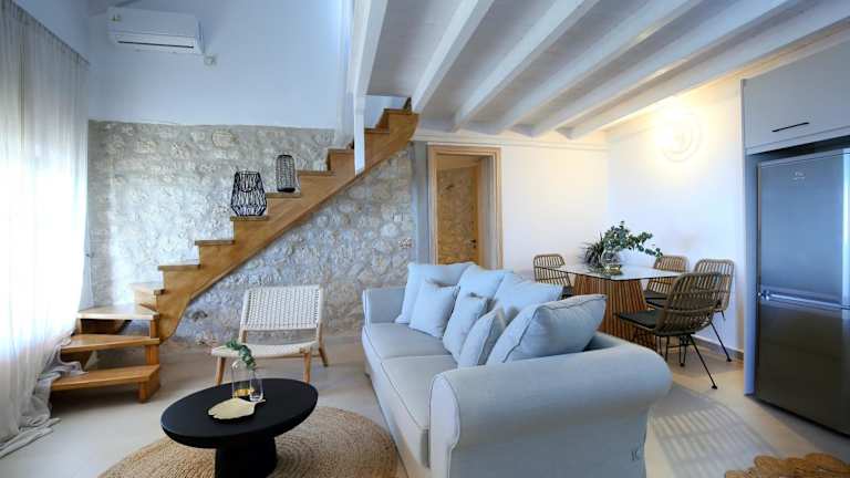 Die Georgia Villas bieten komfortable, klimatisierte Unterkünfte in einem traditionell aus Stein erbauten Komplex. Jede Villa verfügt über einen gemütlichen Wohnbereich mit Kamin, einen Essbereich und eine voll ausgestattete Küche. Ein TV mit Sat-Kanälen und kostenfreies WLAN sind ebenfalls vorhanden. Jede Villa hat auch eine möblierte Terrasse, von der aus Sie den atemberaubenden Blick auf das Meer und die Landschaft genießen können.