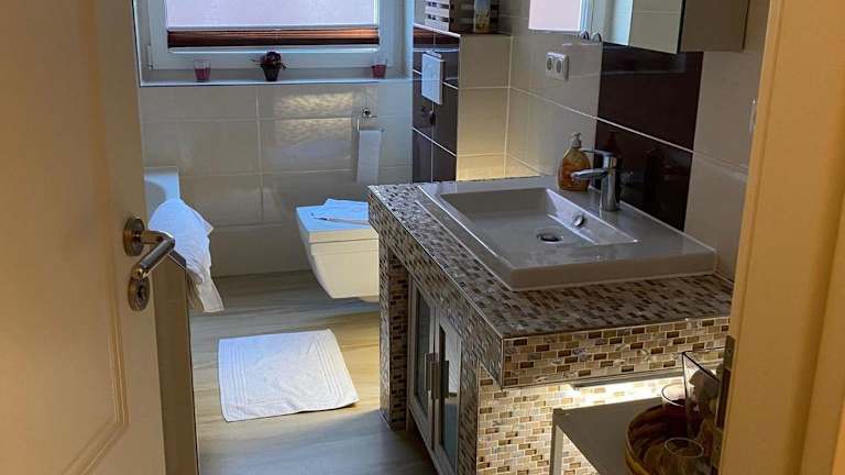 Die Ferienwohnung verfügt über ein Schlafzimmer, eine Küche mit Kühlschrank und Geschirrspüler, einen Flachbild-TV sowie einen Sitzbereich. Das Badezimmer ist mit einer Badewanne ausgestattet. Handtücher und Bettwäsche können gegen Aufpreis bereitgestellt werden. WLAN ist in allen Bereichen der Unterkunft verfügbar.