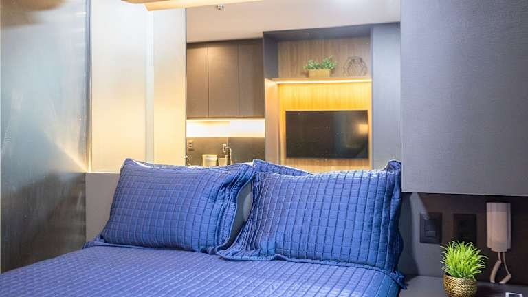 Die klimatisierten Wohneinheiten verfügen über eine voll ausgestattete Küche. Einige Wohneinheiten bieten zudem eine Terrasse und/oder einen Balkon mit Blick auf die Stadt oder das Meer.