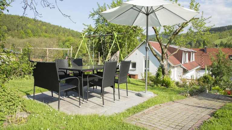Das Ferienhaus verfügt über einen Garten mit Blick ins Grüne, eine Terrasse und Grillmöglichkeiten. Des Weiteren ist die Unterkunft klimatisiert und bietet eine ruhige und entspannte Atmosphäre für einen erholsamen Aufenthalt.