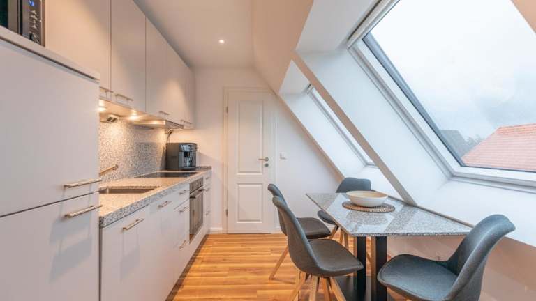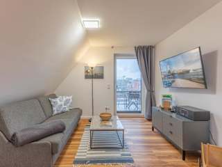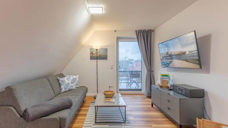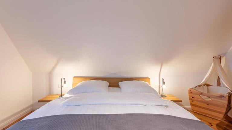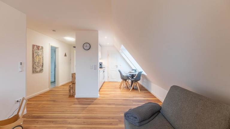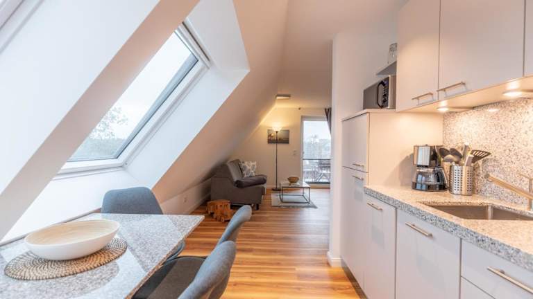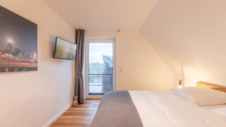Die Ferienwohnung besteht aus einem Schlafzimmer, einem Wohnzimmer und einer gut ausgestatteten Küche, die mit einem Kühlschrank und einem Geschirrspüler ausgestattet ist. Zudem ist ein TV vorhanden.