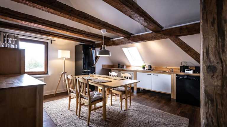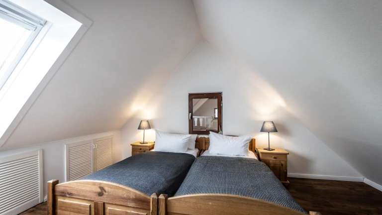 Die Ferienwohnung umfasst zwei Schlafzimmer und eine voll ausgestattete Küche, die mit einem Kühlschrank, Geschirrspüler und einer Kaffeemaschine ausgerüstet ist. Zur Unterhaltung steht ein Flachbild-TV zur Verfügung.