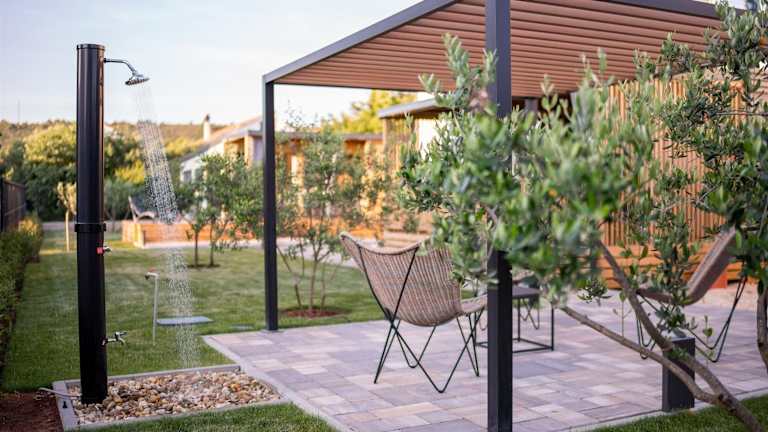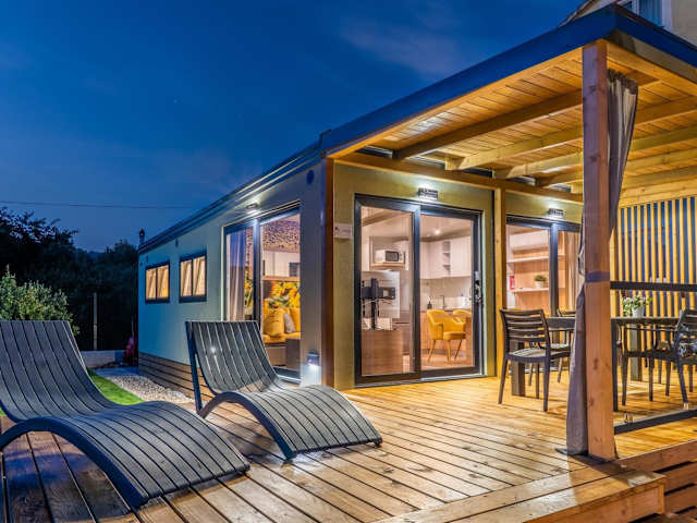 Giardino Sukošan - new mobile houses in olive garden ist eine Unterkunft, die in einem Olivenhain gelegen ist und neu gestaltete mobile Häuser bietet. Zu den Annehmlichkeiten zählen kostenloses WLAN, Grillmöglichkeiten, ein Garten und ein kostenloser Privatparkplatz. Die Unterkunft ist rauchfrei und hat einen Nichtraucherbereich für öffentliche und private Räume. Der Check-in ist zwischen 14:00 und 23:30 Uhr möglich, der Check-out zwischen 06:00 und 10:00 Uhr. Haustiere sind nicht gestattet und das Mindestalter für den Check-in beträgt 18 Jahre.