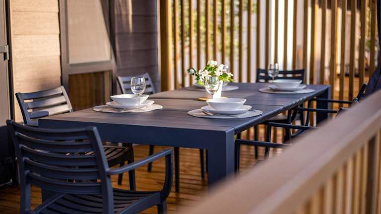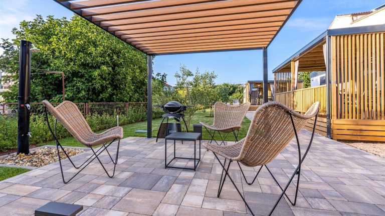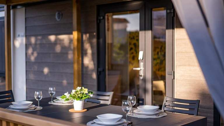 Die mobilen Häuser sind mit einer Terrasse, einem Sitzbereich, einem Flachbild-TV und einer voll ausgestatteten Küche mit Kühlschrank, Mikrowelle, Herdplatte, Kaffeemaschine und Wasserkocher ausgestattet. Jedes Zimmer verfügt über ein eigenes Badezimmer mit Dusche und kostenlosen Pflegeprodukten. Es stehen Obst, Bettwäsche und Handtücher zur Verfügung.