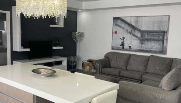 Die Ferienwohnung umfasst drei separate Schlafzimmer, drei Badezimmer und ein Wohnzimmer, das Platz für die Gäste bietet.