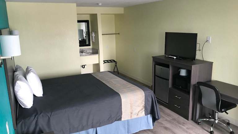 Die Zimmer in der Gila Bend Lodge sind mit einem Schreibtisch und einem Flachbild-TV ausgestattet. Zudem erhalten die Gäste Bettwäsche und Handtücher.