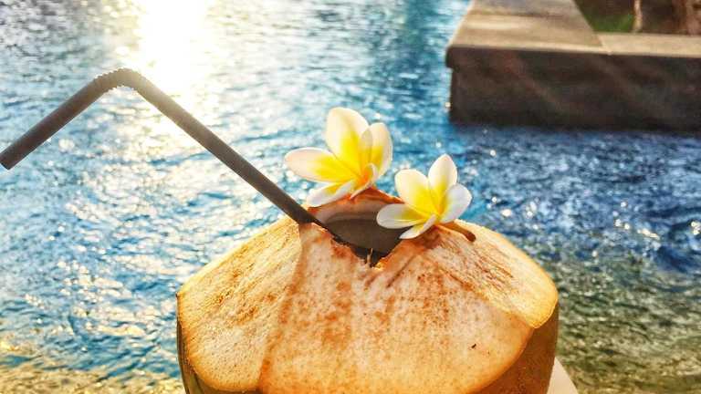 Die Zimmer sind mit einem Balkon mit Poolblick sowie einem Schreibtisch ausgestattet.