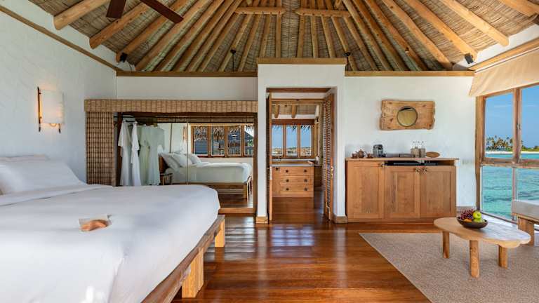 Das Gili Lankanfushi Resort bietet verschiedene Arten von Villen mit Meerblick, darunter Wasserbungalows und Suites. Jedes Zimmer kommt mit einem eigenen Sonnendeck und einem Wassergarten, während die luxuriöse Ausstattung einen Flatscreen-TV, ein BOSE Surround-Sound-System, eine Minibar sowie eine Espresso-Maschine umfasst. Die Zimmer sind modern und komfortabel eingerichtet, mit separaten Duschen und Badewannen, Klimaanlage und kostenlosem WLAN. Auf einige Villen gibt es Glasböden, die den Blick auf das Meer freigeben, was ein besonderes Erlebnis für die Gäste darstellt.