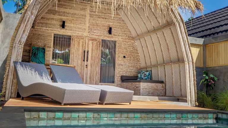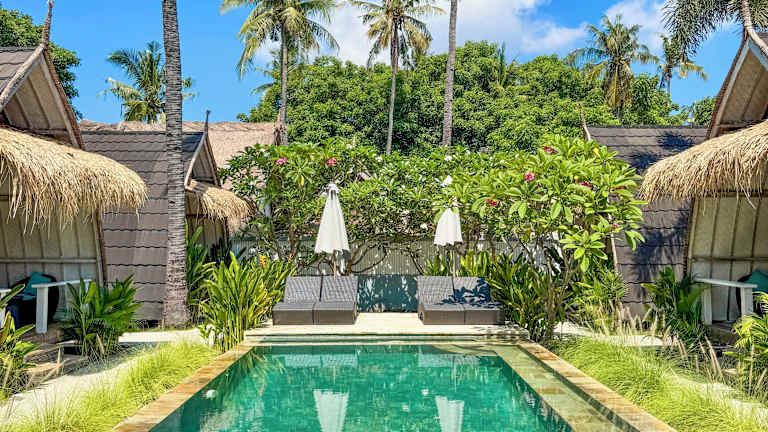 Die klimatisierten Zimmer des Gili Meno Escape sind komfortabel und stilvoll eingerichtet. Jedes Zimmer verfügt über einen Schreibtisch, einen Flachbild-TV und ein eigenes Bad. Von der Terrasse aus genießen Sie einen herrlichen Blick auf den Pool und den Garten. Die Zimmer sind außerdem mit einem Kühlschrank ausgestattet, damit Sie Ihre Getränke und Snacks immer griffbereit haben. Genießen Sie eine erholsame Nacht in den gemütlichen Betten und lassen Sie den Alltag hinter sich.