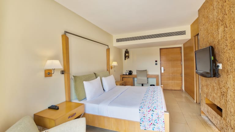Die Zimmer sind mit Klimaanlage, Heizung, Ventilator und einem Balkon oder einer Terrasse mit Gartenblick ausgestattet. Zur weiteren Ausstattung gehören ein Doppel- oder Queensize-Bett, ein Safe, eine Minibar, ein Kühlschrank sowie Tee- und Kaffeezubereiter. Die Badezimmer verfügen über eine Dusche und eine Badewanne und bieten Haartrockner sowie Kosmetikartikel.