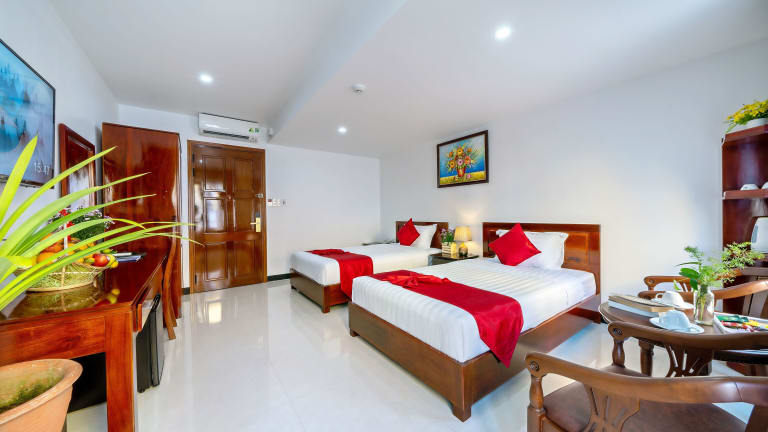 Die Gioan Boutique Villa befindet sich in Hội An und bietet eine ideale Ausgangslage, um die Schönheit dieser historischen Stadt zu erkunden. In der Nähe der Unterkunft finden Sie beliebte Sehenswürdigkeiten wie das Historische Museum Hội An, die Versammlungshalle der chinesischen Kongregation Chaozhou und die überdachte japanische Brücke. Der internationale Flughafen Đà Nẵng ist nur 29 km entfernt, und die Unterkunft bietet einen kostenpflichtigen Flughafentransfer für Ihre Bequemlichkeit.
