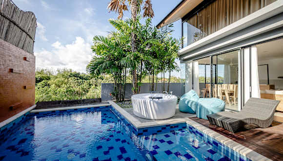Die Gioheven Villa befindet sich in Nusa Dua und bietet eine ideale Lage für einen erholsamen Urlaub. In der Nähe der Villa befinden sich die Strände Sawangan und Mulia, die beide zu Fuß oder mit dem Auto erreichbar sind. Die Villa liegt auch in der Nähe des internationalen Flughafens Denpasar, der nur 13 km entfernt ist.