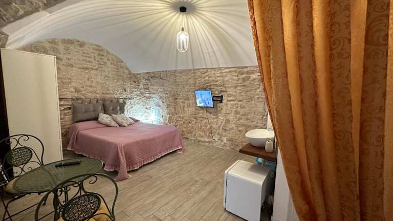 Jedes Zimmer in der Giovinazzo Suite Pavone Griffi ist mit einem Kleiderschrank, Klimaanlage sowie einem Schreibtisch ausgestattet. Das eigene Badezimmer bietet kostenlose Pflegeprodukte, einen Haartrockner und eine Dusche.