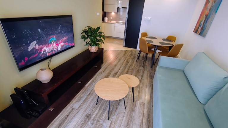 Die Ferienwohnung verfügt über ein Schlafzimmer, ein Wohnzimmer und eine gut ausgestattete Küchenzeile mit Kühlschrank und Geschirrspüler. Zu den Annehmlichkeiten zählen ein Flachbild-TV, ein Badezimmer mit Dusche sowie ein Balkon mit Stadtblick. Handtücher und Bettwäsche sind in der Unterkunft verfügbar.