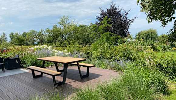 Das Ferienhaus beinhaltet eine gut ausgestattete Küche mit einem Kühlschrank, Geschirrspüler und Ofen. Es sind keine weiteren Verpflegungsmöglichkeiten angegeben.
