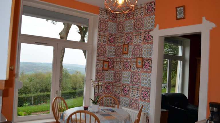 Das Ferienhaus verfügt über 2 Schlafzimmer, die eine gemütliche und komfortable Unterkunft für bis zu 5 Personen bieten. Es gibt auch ein modernes Badezimmer mit Dusche und eine gut ausgestattete Küche mit Geschirrspüler und Mikrowelle. Die Gäste haben Zugang zu einer Waschmaschine und können den Fernseher nutzen, um sich zu entspannen. Von der Terrasse aus haben Sie einen herrlichen Blick auf den Garten und können die Natur in vollen Zügen genießen.