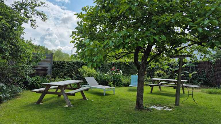 Alle Wohneinheiten verfügen über einen Balkon mit Gartenblick sowie ein Gemeinschaftsbad mit Dusche.