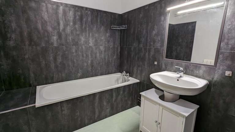 Das Ferienhaus umfasst 2 Schlafzimmer, einen Fernseher und eine gut ausgestattete Küche, die mit einem Kühlschrank und einem Geschirrspüler ausgestattet ist. Es gibt außerdem ein Badezimmer mit einer Badewanne.