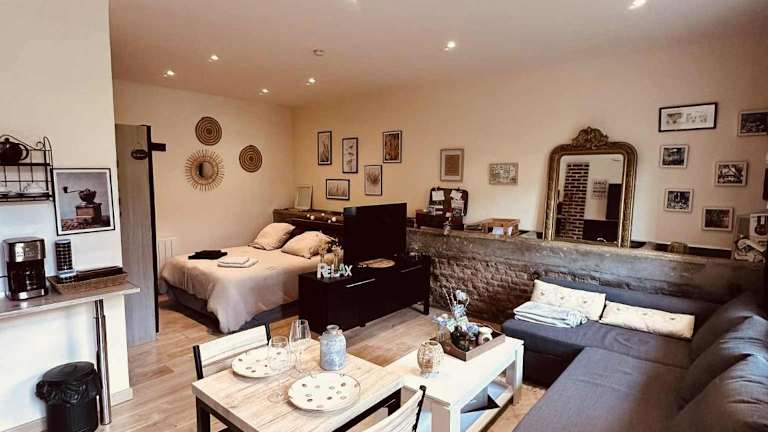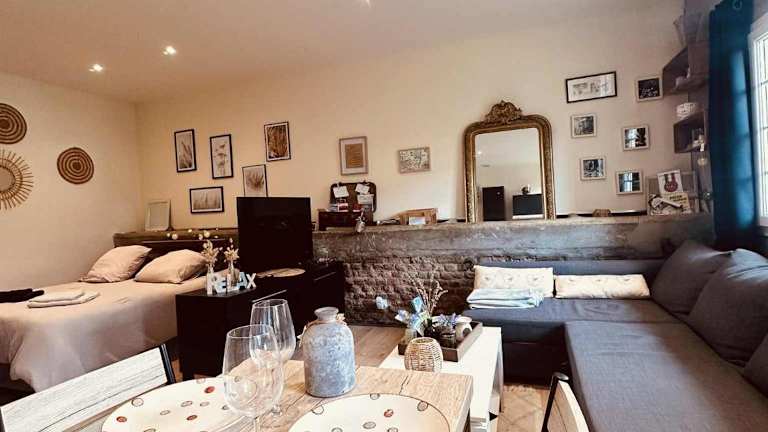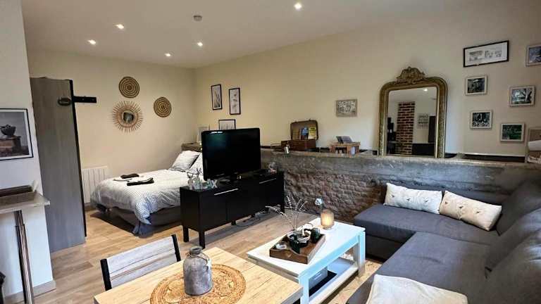 Das Apartment im gîte Cosy Green 2 verfügt über ein gemütliches Schlafzimmer, ein komfortables Wohnzimmer und eine voll ausgestattete Küche. Die stilvolle Einrichtung und die Terrasse mit Blick auf den Garten schaffen eine entspannte und einladende Atmosphäre. Ein Flachbild-TV und kostenfreies WLAN sorgen für Unterhaltung und Verbindung. Das moderne Badezimmer ist mit einer Dusche ausgestattet und bietet allen Komfort, den Sie benötigen.