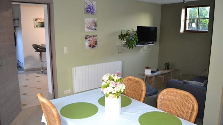 Das Ferienhaus im Gîte de l'Espinette verfügt über ein gemütliches Schlafzimmer, ein geräumiges Wohnzimmer und eine voll ausgestattete Küche. Hier finden Sie alles, was Sie für einen angenehmen Aufenthalt benötigen, einschließlich eines Kühlschranks und einer Kaffeemaschine. Das Badezimmer ist mit einer Dusche und einem Haartrockner ausgestattet. Im Wohnzimmer gibt es einen Flachbild-Kabel-TV und einen CD-Player für Ihre Unterhaltung. Das kostenfreie WLAN ermöglicht es Ihnen, mit der Welt in Verbindung zu bleiben.