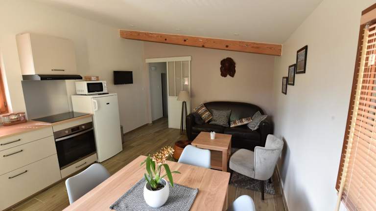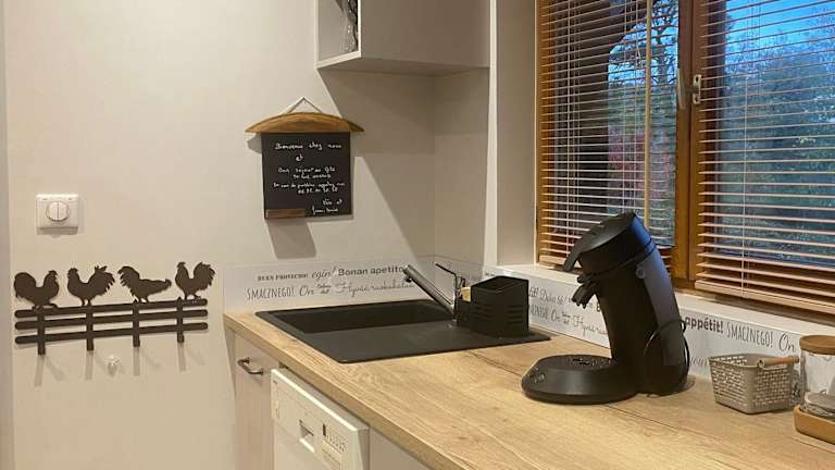 Das Ferienhaus im Gîte du Gué Maraud bietet alles, was Sie für einen komfortablen Aufenthalt benötigen. Es verfügt über ein gemütliches Schlafzimmer, eine gut ausgestattete Küche mit Kühlschrank und Geschirrspüler sowie ein modernes Badezimmer mit Dusche. Der Flachbild-TV und der komfortable Sitzbereich sorgen dafür, dass Sie sich wie zu Hause fühlen. Handtücher und Bettwäsche werden gestellt, sodass Sie sich um nichts kümmern müssen.