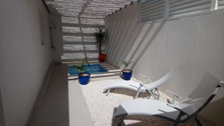 Die Ferienwohnung besteht aus einem Schlafzimmer, einem Wohnzimmer und einer voll ausgestatteten Küche mit Kühlschrank und Kaffeemaschine. Zur Ausstattung zählen Klimaanlage, ein Badezimmer mit Dusche und Whirlpool, sowie kostenloses WLAN. Handtücher und Bettwäsche werden bereitgestellt.