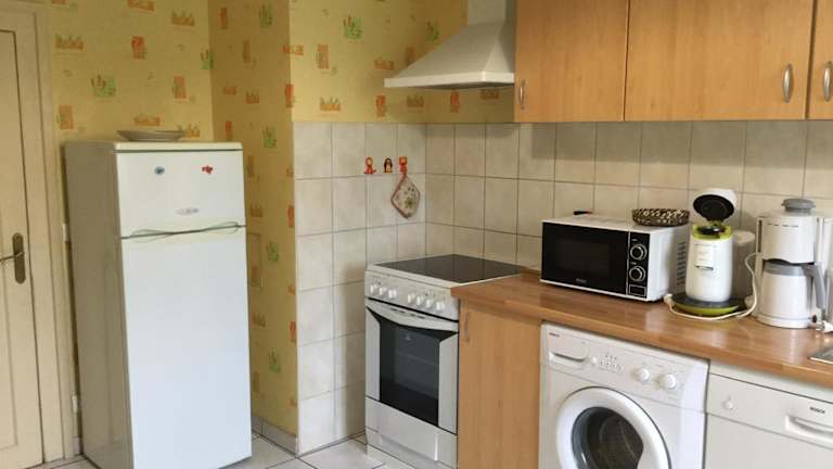 Die Ferienwohnung verfügt über zwei Schlafzimmer, ein Wohnzimmer, eine voll ausgestattete Küche mit Kühlschrank und Kaffeemaschine sowie ein Badezimmer mit Dusche und Haartrockner. Handtücher und Bettwäsche können gegen Aufpreis bereitgestellt werden.