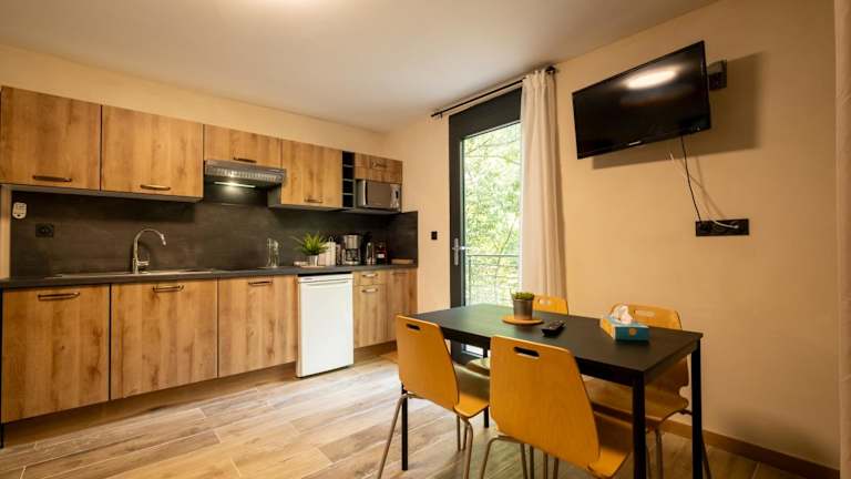 Die Unterkunft bietet eine voll ausgestattete Küche, die mit einem Kühlschrank, einem Geschirrspüler, einem Ofen, einer Mikrowelle und einem Wasserkocher ausgestattet ist. Auf Wunsch ist eine Essenslieferung in die Unterkunft möglich.