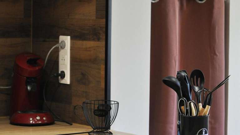Die Unterkunft verfügt über eine voll ausgestattete Küche mit einem Kühlschrank und einer Kaffeemaschine, die es den Gästen ermöglicht, eigene Mahlzeiten zuzubereiten.